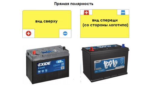 Две одинаковые по характеристикам и типу (EBF, AGM, Ca/Ca, HIBRID), но различные по полярности батареи ничем друг от друга не отличаются, кроме отзеркаленной схемы подачи электроэнергии. Внешне они легко идентифицируются по левому (для прямой полярности) или правому (для обратной полярности) плюсу. Достаточно сложно корректно установить «перевернутую» батарею в штатное место под капотом без каких-либо технических переделок. Автовладельца должны сразу насторожить: