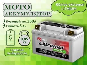 Мото аккумулятор RDrive eXtremal LITHIUM 5Ач прямая полярность YTZ14S-LI
