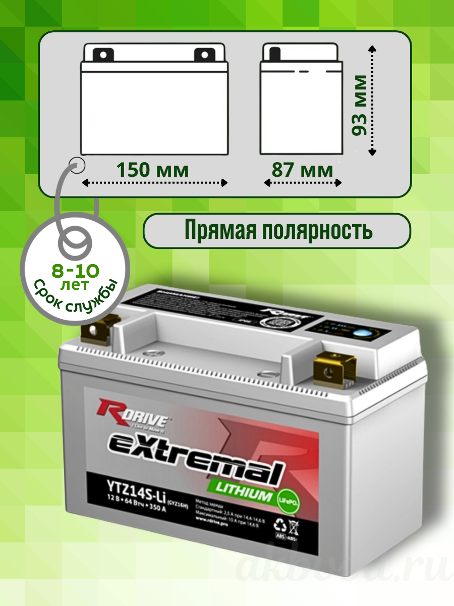 Аккумулятор RDrive eXtremal LITHIUMYTZ14S-LI – мощная энергия для вашего мотоцикла!