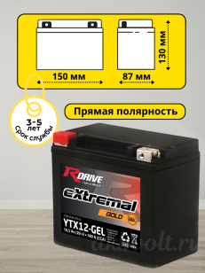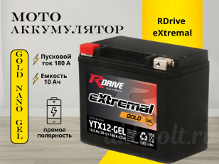 Мото аккумулятор RDrive eXtremal GOLD 10Ач прямая полярность YTX12-GEL