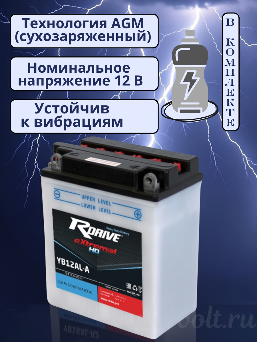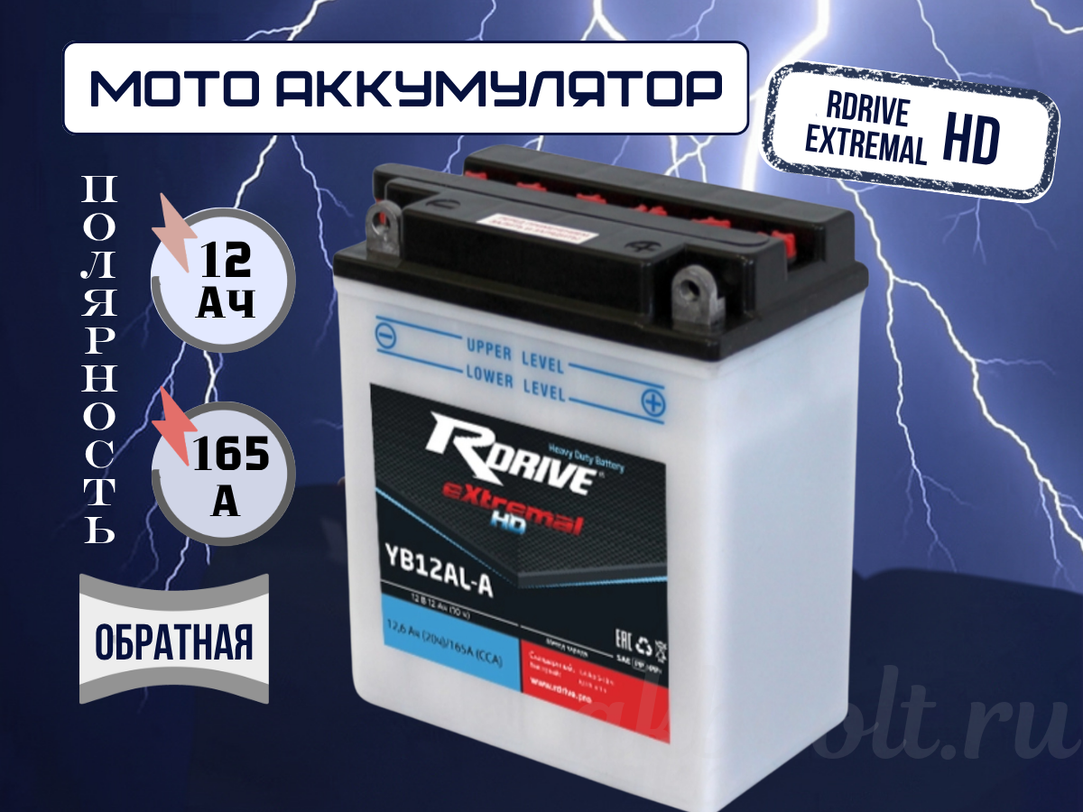 Аккумулятор RDrive eXtremal HD 12Ач обратная полярность YB12AL-A
