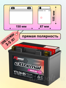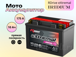 Мото аккумулятор RDrive eXtremal IRIDIUM 10Ач прямая полярность YT12A-BS
