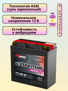 Мото аккумулятор RDrive eXtremal IRIDIUM 12Ач прямая полярность YT14B-BS