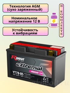 Аккумулятор RDrive eXtremal IRIDIUM 6.5Ач с прямой полярностью YT7B-BS — это воплощение передовых технологий и надежности, созданное для самых требовательных владельцев мототехники. Представляя собой герметизированную, сухозаряженную аккумуляторную батарею, он поставляется в комплекте с высококачественным электролитом, обеспечивая максимальную производительность и долговечность.