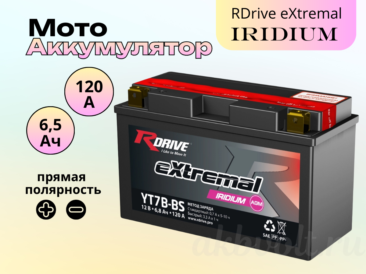 Мото аккумулятор RDrive eXtremal IRIDIUM 6.5Ач прямая полярность