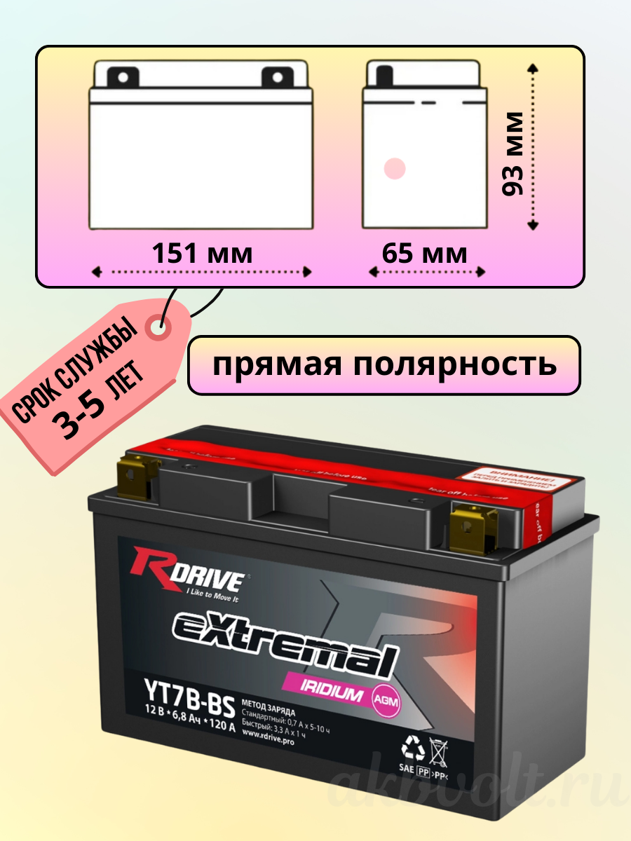 Аккумулятор RDrive eXtremal IRIDIUM 6.5Ач: Энергия для Вашей Мототехники