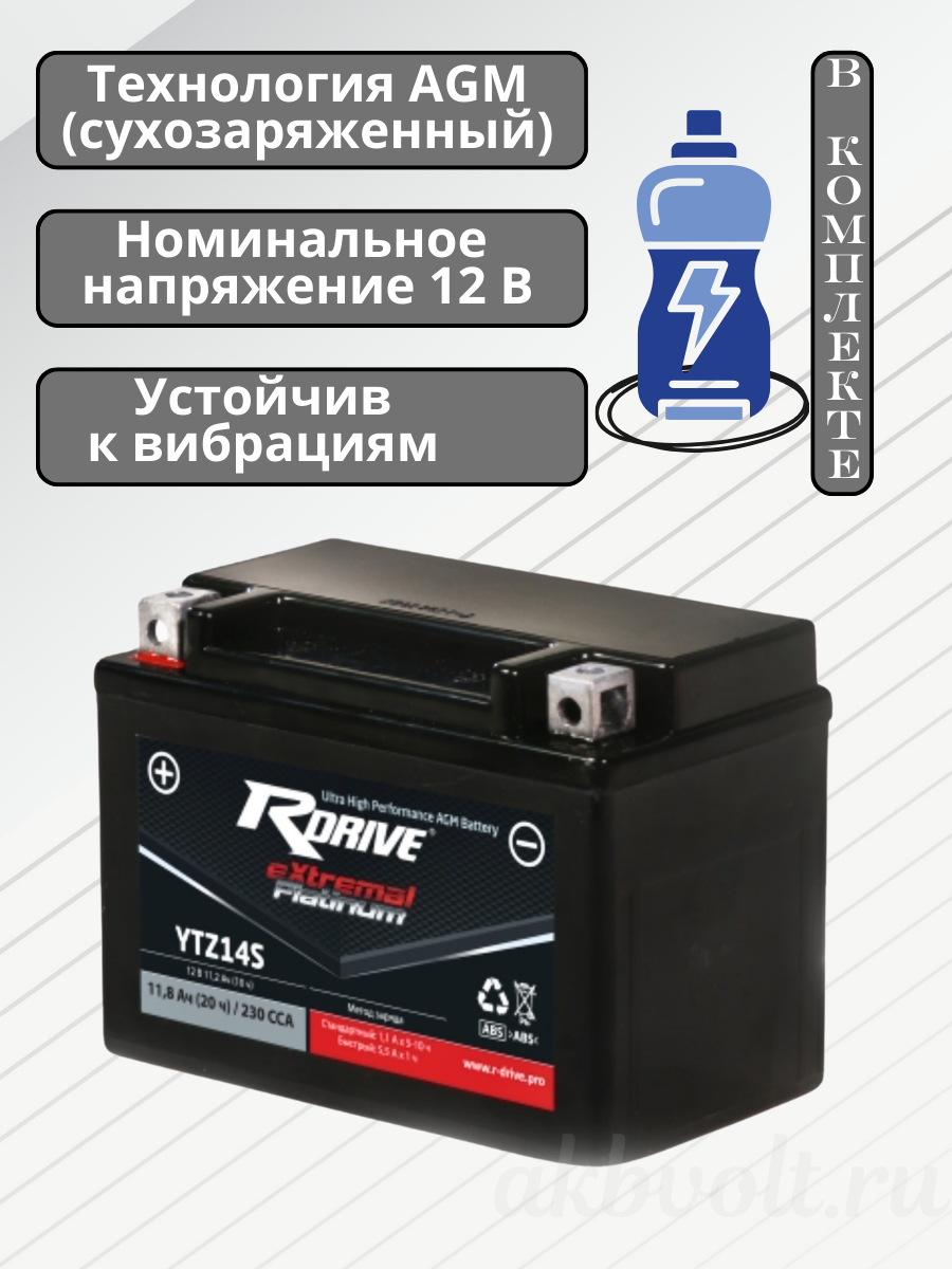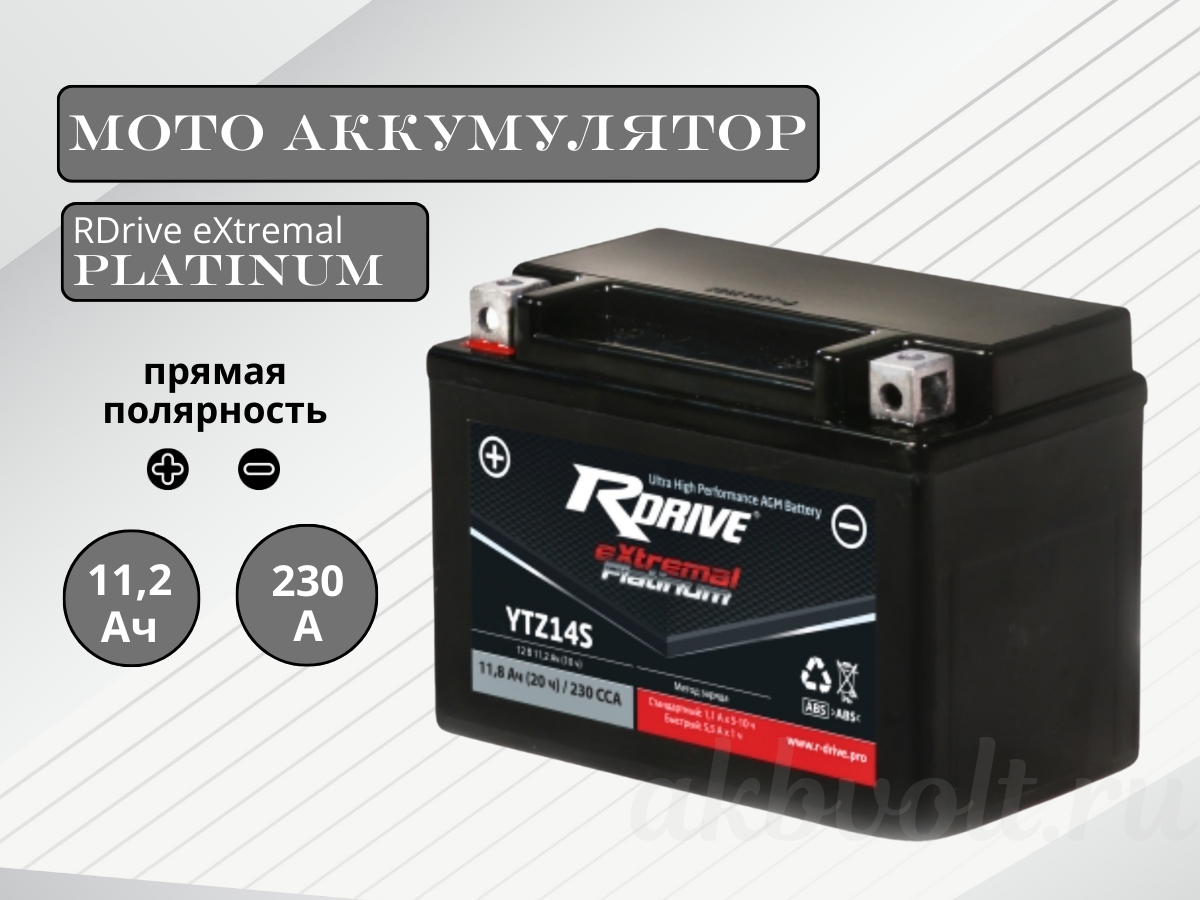 Аккумулятор RDrive eXtremal PLATINUM 11.2Ач прямая полярность YTZ14S сухозаряженный: Энергия для Ваших Приключений