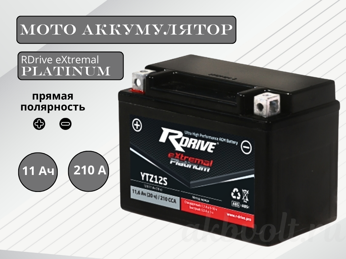 Мото аккумулятор RDrive eXtremal PLATINUM 11Ач прямая полярность YTZ12S