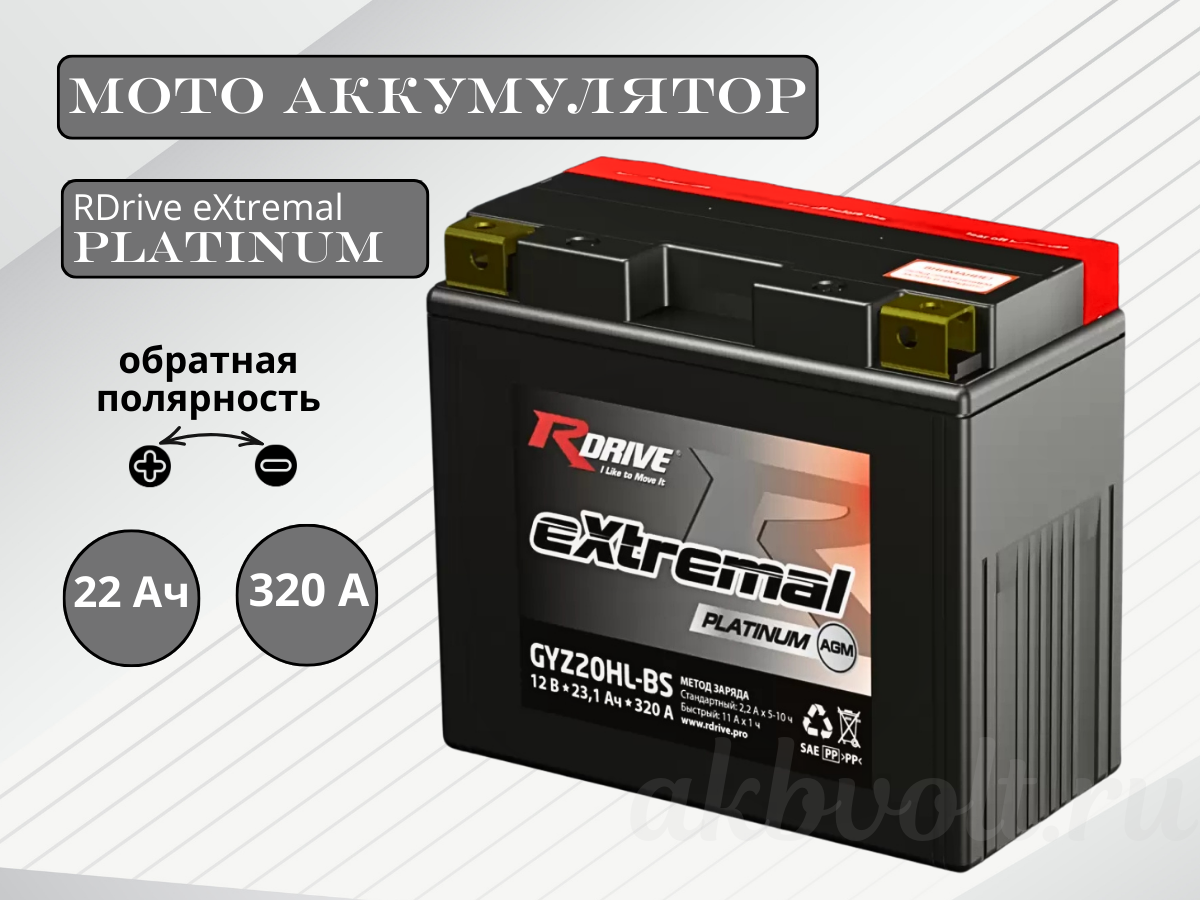 Мото аккумулятор RDrive eXtremal PLATINUM 22Ач обратная полярность GYZ20HL-BS