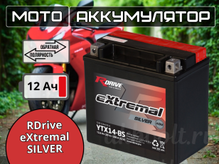 Мото аккумулятор RDrive eXtremal SILVER 12Ач прямая полярность YTX14-BS