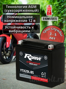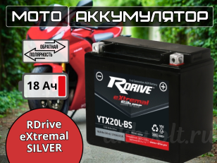 Мото аккумулятор RDrive eXtremal SILVER 18Ач обратная полярность YTX20L-BS