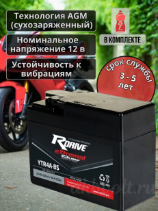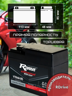 Мото аккумулятор RDrive eXtremal SILVER 2.3Ач прямая полярность YTR4A-BS