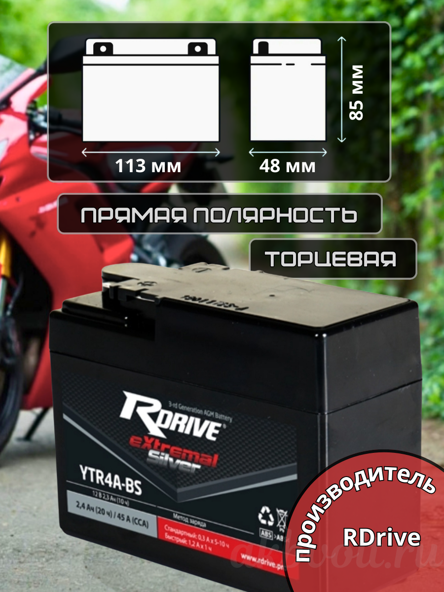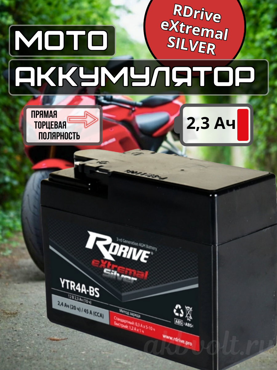 Мото аккумулятор RDrive eXtremal SILVER 2.3Ач прямая полярность YTR4A-BS