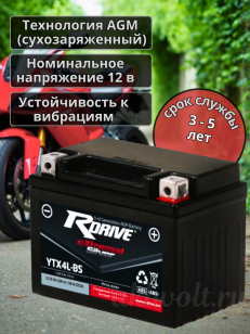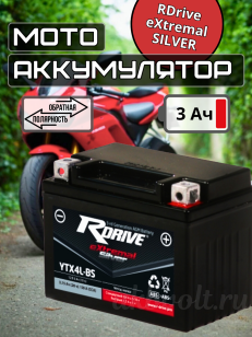 Мото аккумулятор мото RDrive eXtremal SILVER 3Ач обратная полярность YTX4L-BS