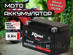 Мото аккумулятор RDrive eXtremal SILVER 6Ач прямая полярность YTX7A-BS