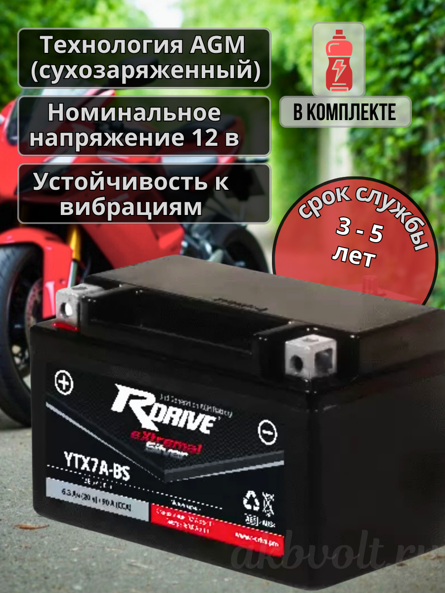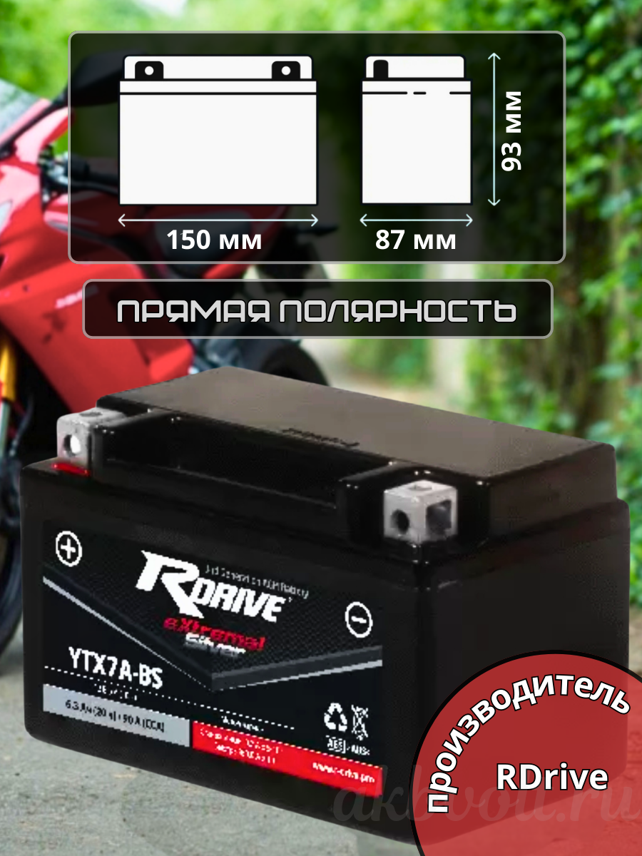 Мото аккумулятор RDrive eXtremal SILVER 6Ач прямая полярность YTX7A-BS