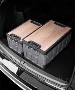 Ящик-органайзер крышка дерево в багажник автомобиля 35л + мешок водонепроницаемый черный-серый