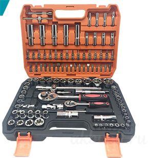 В составе набора 108 предметов: головки торцевые различных размеров, трещотки с быстрым сбросом, удлинители, карданные шарниры, отверточные биты, ключи шестигранные и многое другое. Такое разнообразие позволяет выполнять широкий спектр ремонтных и монтажных работ, связанных с автомобилем, сантехникой, мебелью и другими сферами.