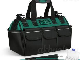 Внутреннее пространство сумки продумано до мелочей, предлагая множество отделений и карманов различного размера. Это позволяет оптимально разместить инструменты разных типов, обеспечивая быстрый и удобный поиск нужного элемента. Усиленное дно защищает содержимое от повреждений и обеспечивает устойчивость сумки на любой поверхности.