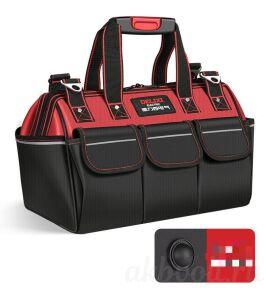 Сумка оснащена удобными ручками для переноски, а также, возможно, плечевым ремнем (уточните комплектацию). Внутреннее пространство продумано до мелочей и включает в себя множество отделений и карманов различных размеров, позволяющих оптимально организовать хранение инструментов, крепежа и других необходимых мелочей.