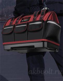 Жесткое пластиковое дно – залог устойчивости и защиты. Сумка оснащена прочным жестким пластиковым дном, которое обеспечивает устойчивость на любой поверхности и предотвращает повреждение инструментов от ударов и падений. Такая конструкция позволяет сумке сохранять форму даже при полной загрузке, что значительно облегчает поиск нужного инструмента.