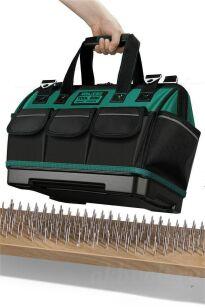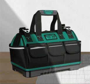 Ключевым преимуществом данной модели является жесткое пластиковое дно. Оно обеспечивает устойчивость сумки, защищает инструменты от повреждений при падении и предотвращает промокание при контакте с влажной поверхностью. Размеры сумки 52х29х33см позволяют разместить в ней широкий спектр инструментов различного размера.