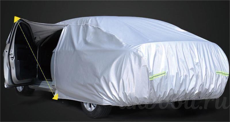 - Всепогодная защита: Изготовленный из высококачественного водонепроницаемого материала, тент-чехол надежно защитит ваш автомобиль от дождя, снега, града и палящего солнца. Он также предотвратит образование конденсата под чехлом, что особенно важно в холодное время года.